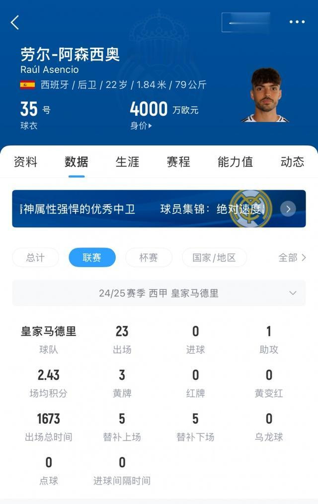 皇马后卫劳尔-阿森西奥本届世俱杯灾难发挥,阿森西奥世俱杯共出战4场,其中对阵多特为第85分钟替补登场。其他三场比赛大牛时代,阿森西奥发挥都很差。