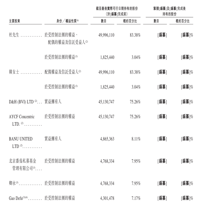 巴奴毛肚火锅主要股东情况,截取自企业招股说明书。