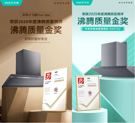 近期,作为厨电三杰“方老华”之一的华帝,旗下两款吸油烟机——小飞碟 Max S66与快拢吸超薄烟机E6076Z,以颠覆性的产品性能与前瞻创新设计翻倍赚,双双荣膺“2025年度沸腾质量测评・沸腾质量金奖”。这一殊荣不仅是对品牌精工品质的权威加冕,更淋漓尽致地彰显出华帝在厨电领域以技术破局引领行业革新的硬核实力。